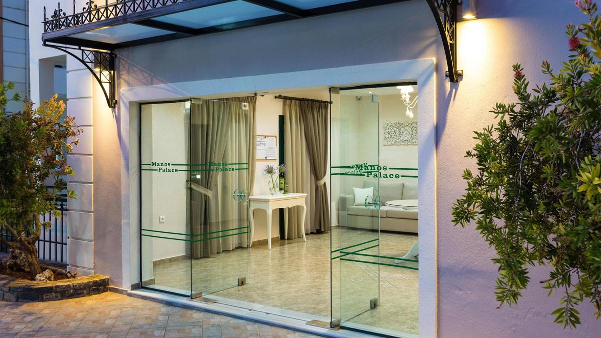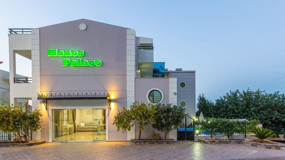 A Manos Palace több épületből álló, igényesen kialakított apartmanház, amely a település egyik legszebb öblének közelében fekszik.