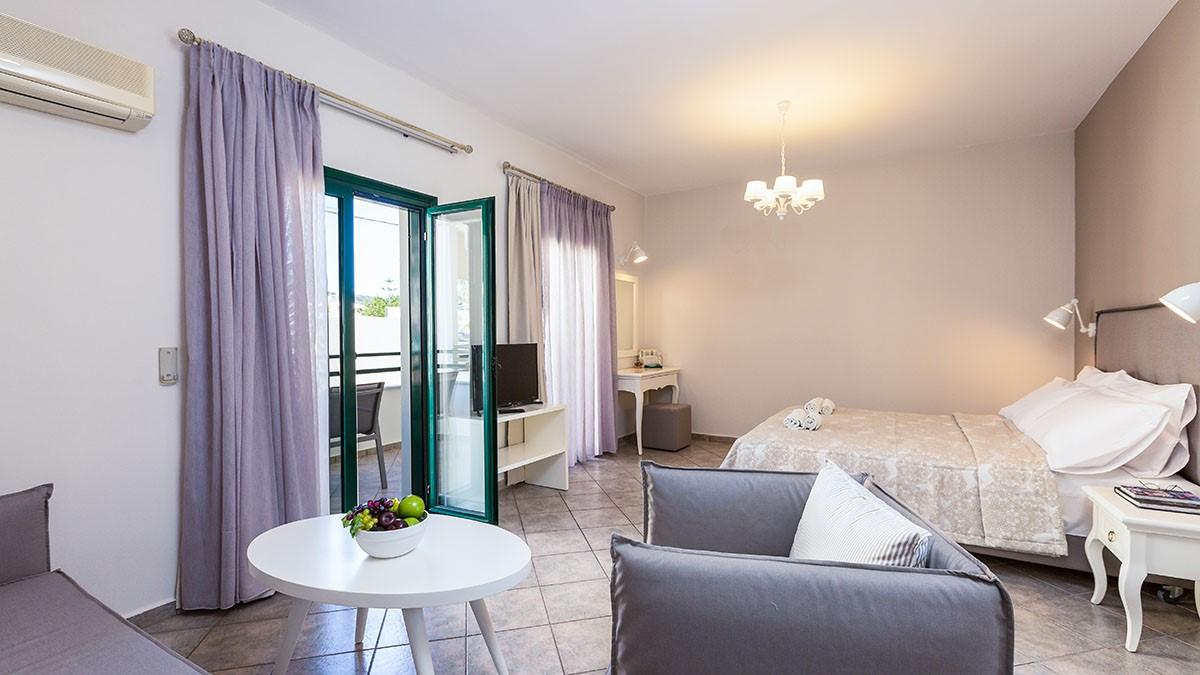 A szobák berendezése igényes, az átlagos görög apartmanoknál magasabb felszereltséget kínál. Egyes szobák kialakítása és színvilága eltérhet.