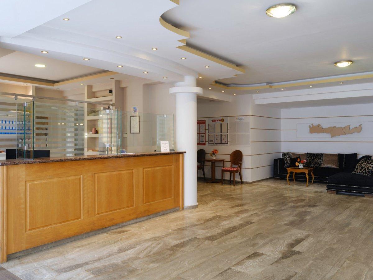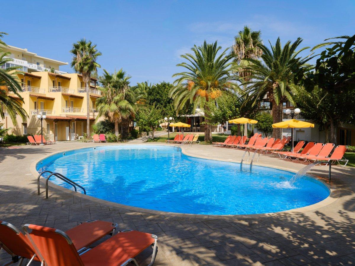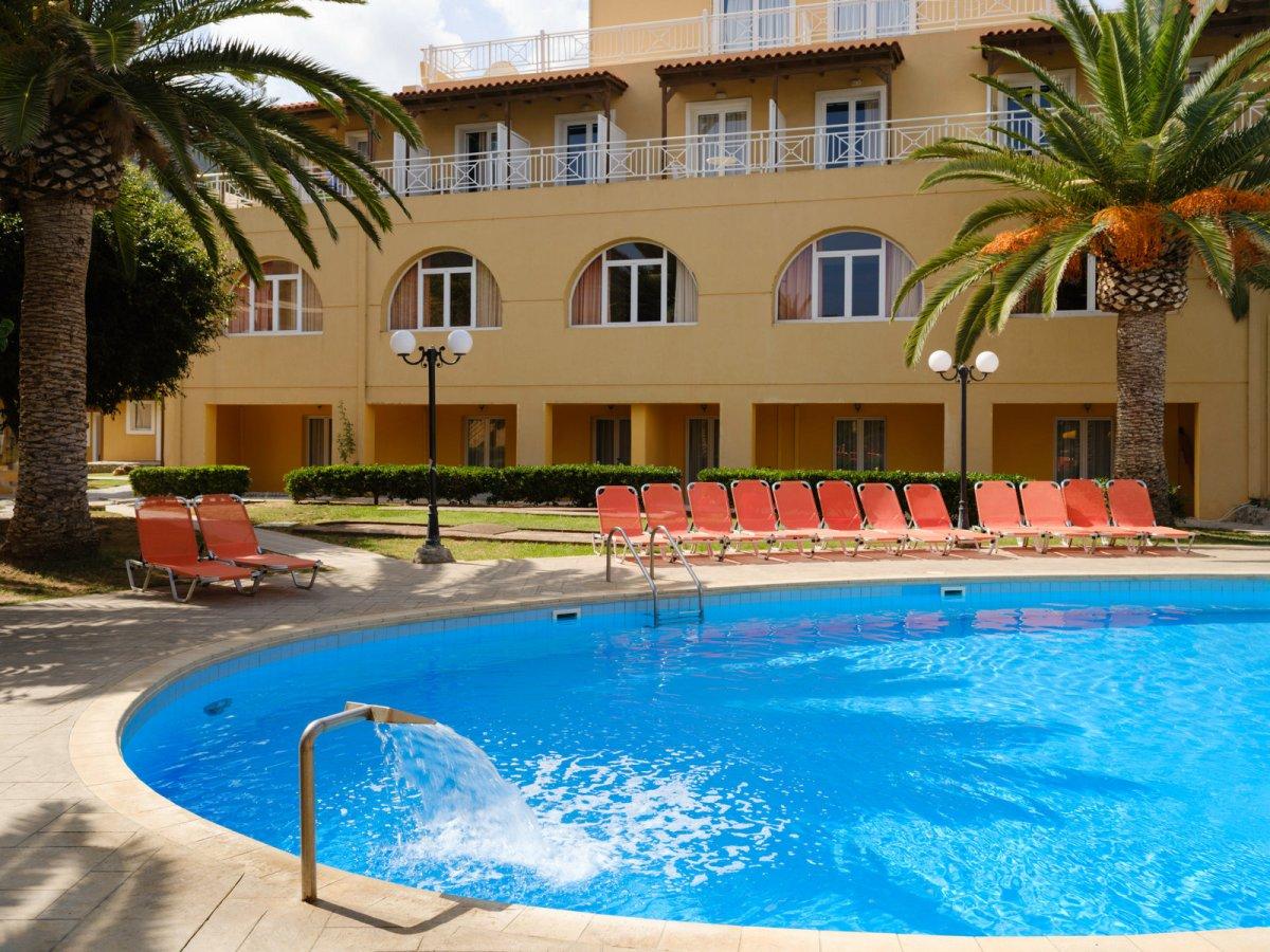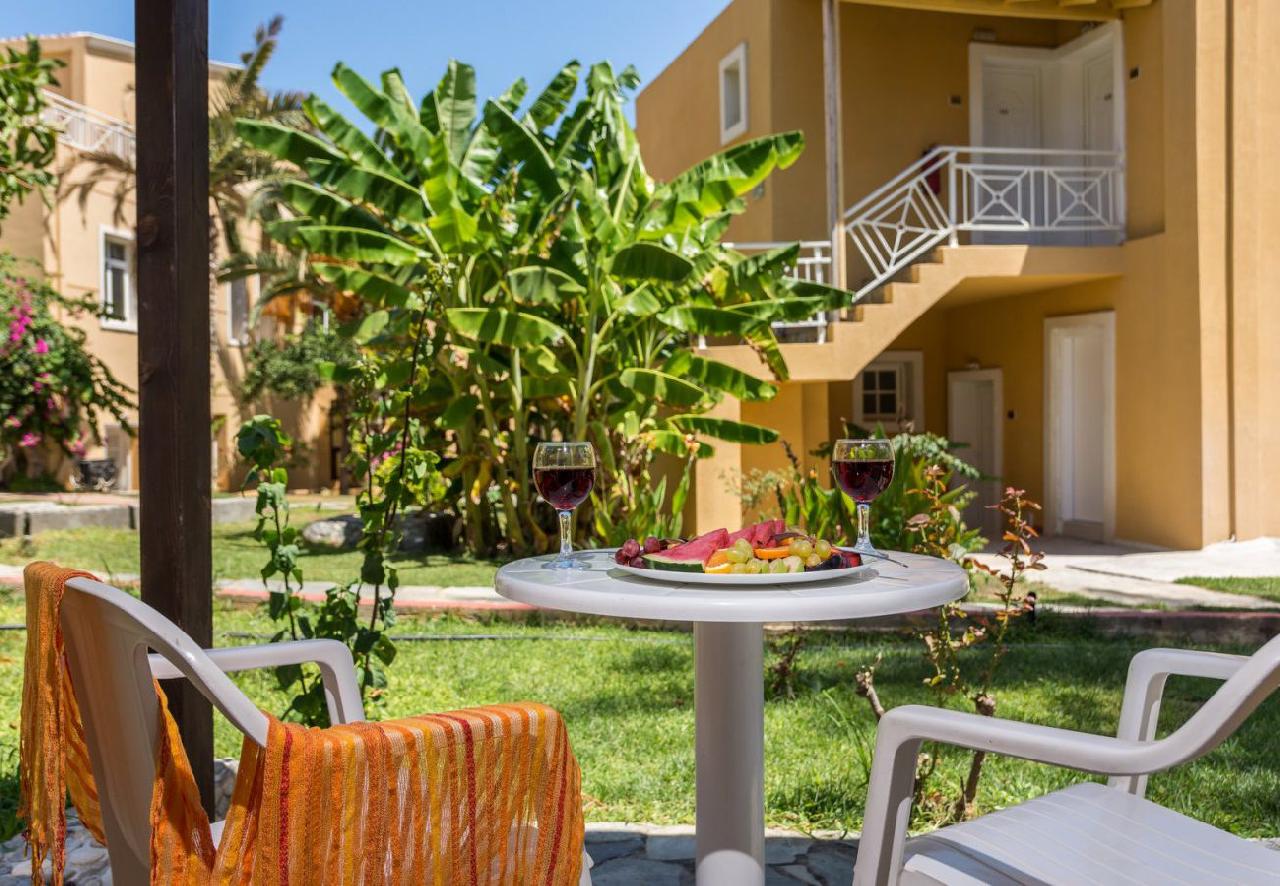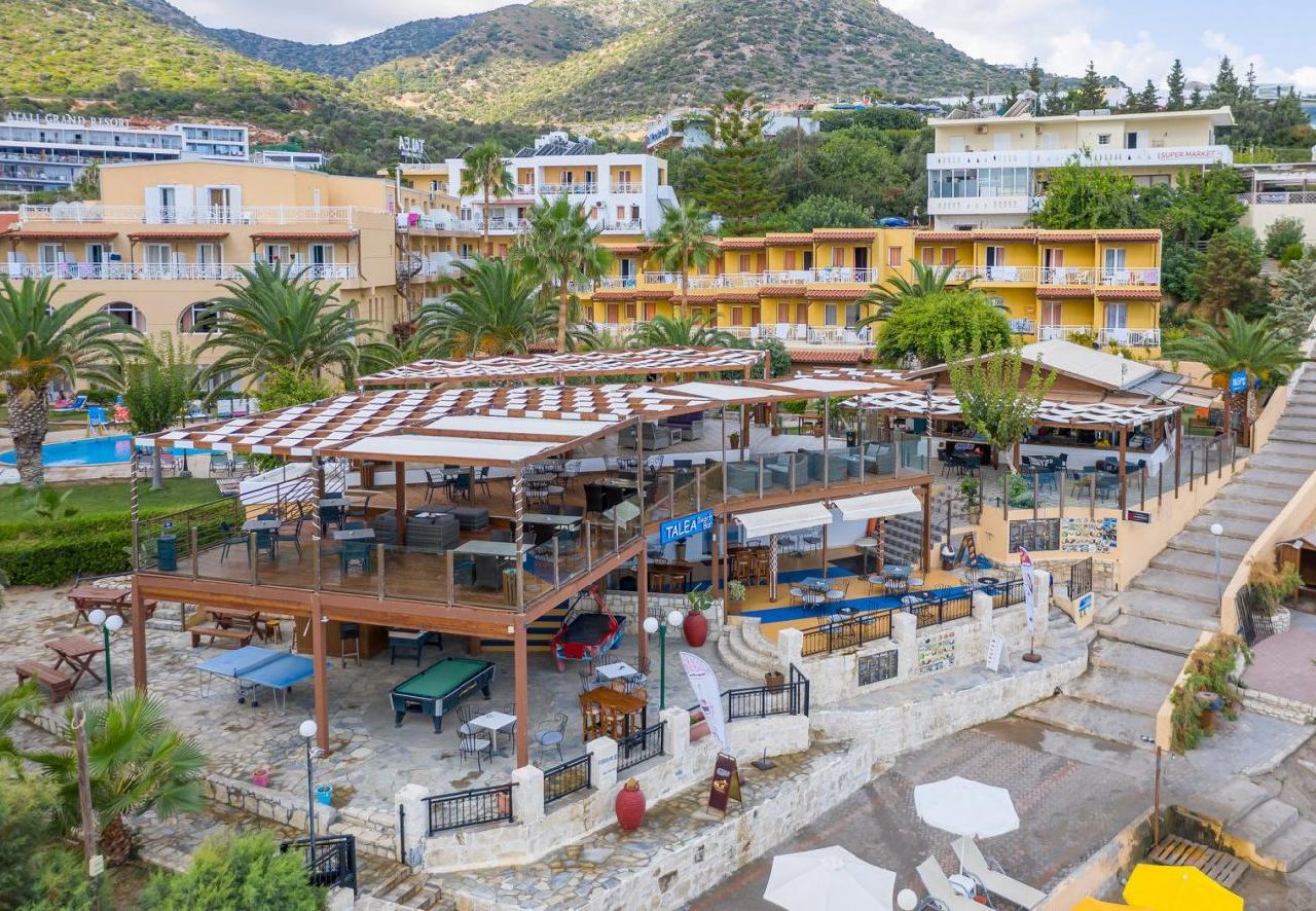A hotel közvetlenül a tengerparton — a homokos, fokozatosan mélyülő strandon helyezkedik el. A szálloda több kisebb és egy központi épületből álló komplexum. A település (Bali, Crete) központja, üzletek, tavernák, bárok, kávézók rövid sétával elérhetők. A környék jól megközelíthető: a legközelebbi nagyobb település, Rethymno kb. 32 km-re található.