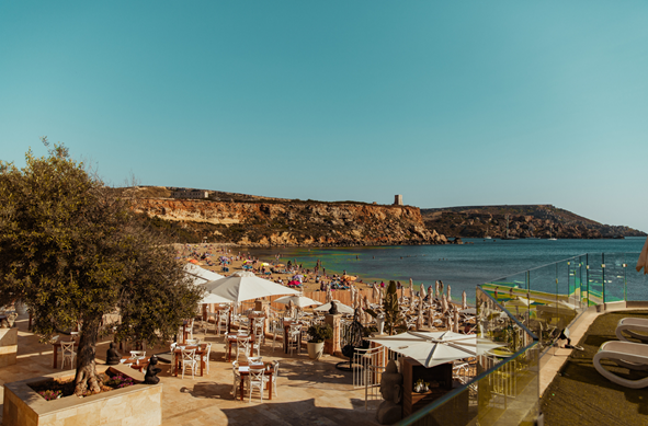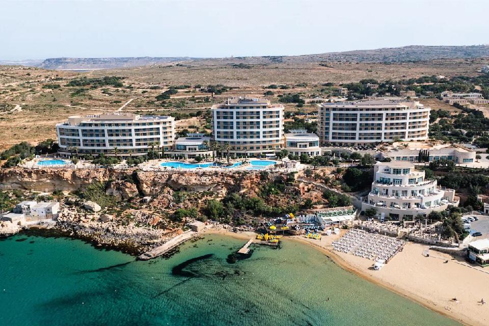 Fekvése: A szálloda Málta nyugati partján, a festői Golden Bay homokos strandja felett helyezkedik el, közvetlen tengerparti elhelyezkedéssel.