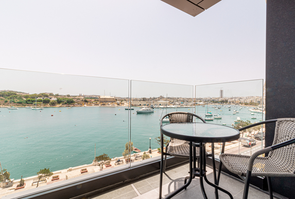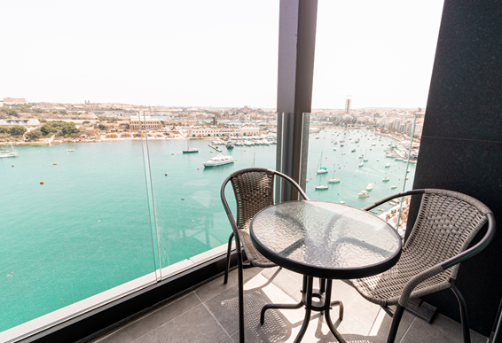 A Superior városra néző szobák a 11–15. emeleten találhatók, 30 m²-en kínálnak elegáns kényelmet, panorámás kilátással Sliema nyüzsgő városára, franciaággyal vagy két külön ággyal. A modern felszereltség – tágas íróasztal, nagy sebességű WiFi, Chromecast-es Smart TV és bőséges csatlakozók – nyugodt és kifinomult pihenést biztosít két felnőtt számára.