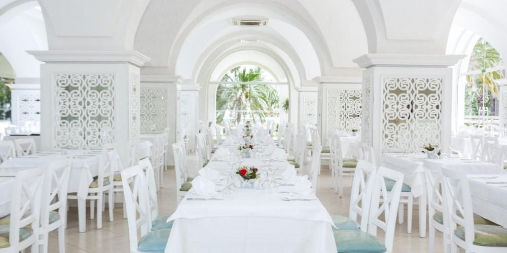 All inclusive ellátással foglalható, mely tartalmazza a reggelit (07:00-10:30), ebédet (12:30-14:30), vacsorát (18:00-21:00), valamint a helyi alkoholos- és alkoholmentes italokat. A szálloda két bárral rendelkezik.