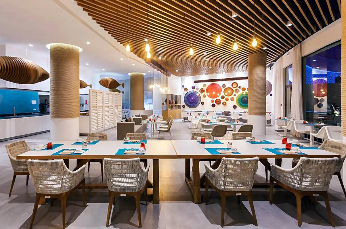 All inclusive ellátással foglalható, mely tartalmazza a reggelit, ebédet, vacsorát és helyi alkoholos– és alkoholmentes italokat. A szálloda tematikus éttermekkel és három bárral rendelkezik.